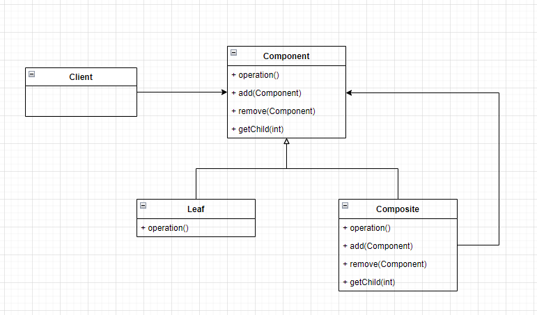 Composite 클래스는 Component 클래스를 상속받고, Component 객체를 소유함으로써 개별 객체와 다른 객체들로 구성된 복합 객체를 같은 방법으로 다룰 수 있습니다.
