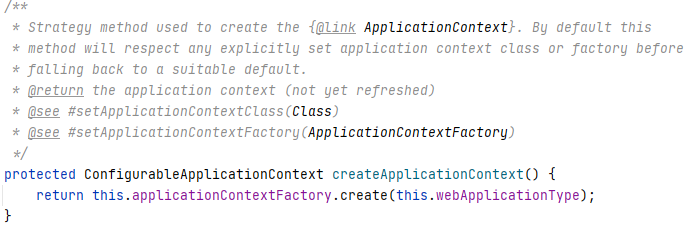 createApplicationContext 메소드는 applicationContextFactory의 create메소드를 호출합니다.