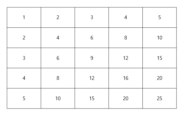 NxN 배열의 각 원소가 갖는 값은 행 또는 열의 배수로 지정되어 있습니다.