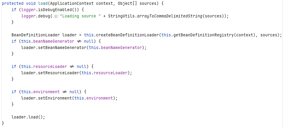 beanNameGenerator, resourceLoader, environment들을 setter를 통해 입력받고 load함수를 호출합니다.