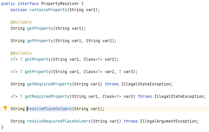 reolvePlaceholders 메서드는 PropertyResolver 인터페이스에서 추상화되어 있고 Environment는 이를 확장합니다.