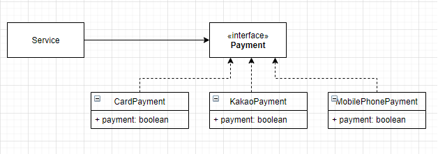 결제 시스템의 경우 계좌이체, 휴대폰 결제, 카카오 결제 등 다양한 결제 시스템이 있으며, 새로운 결제 시스템의 등장에도 확장이 용이하도록 설계가 이루어져야 합니다.
