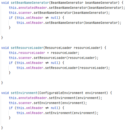 BeanDefinitionLoader의 setter는 annotatedReader, scanner의 setter를 실행합니다.