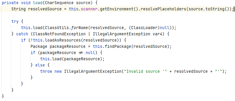 scanner의 getEnvironment를 호출, 그리고 Environment의 resolvePlaceholders 메서드를 호출합니다.